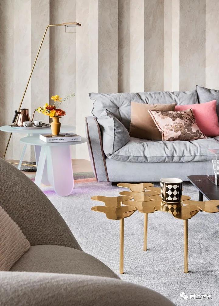 Molteni & C的D.154.2扶手椅有著柔美的花瓣造型,Moroso的Nanook咖啡桌以黃銅材質(zhì)作為輕奢風(fēng)格的細(xì)節(jié)點(diǎn)綴。