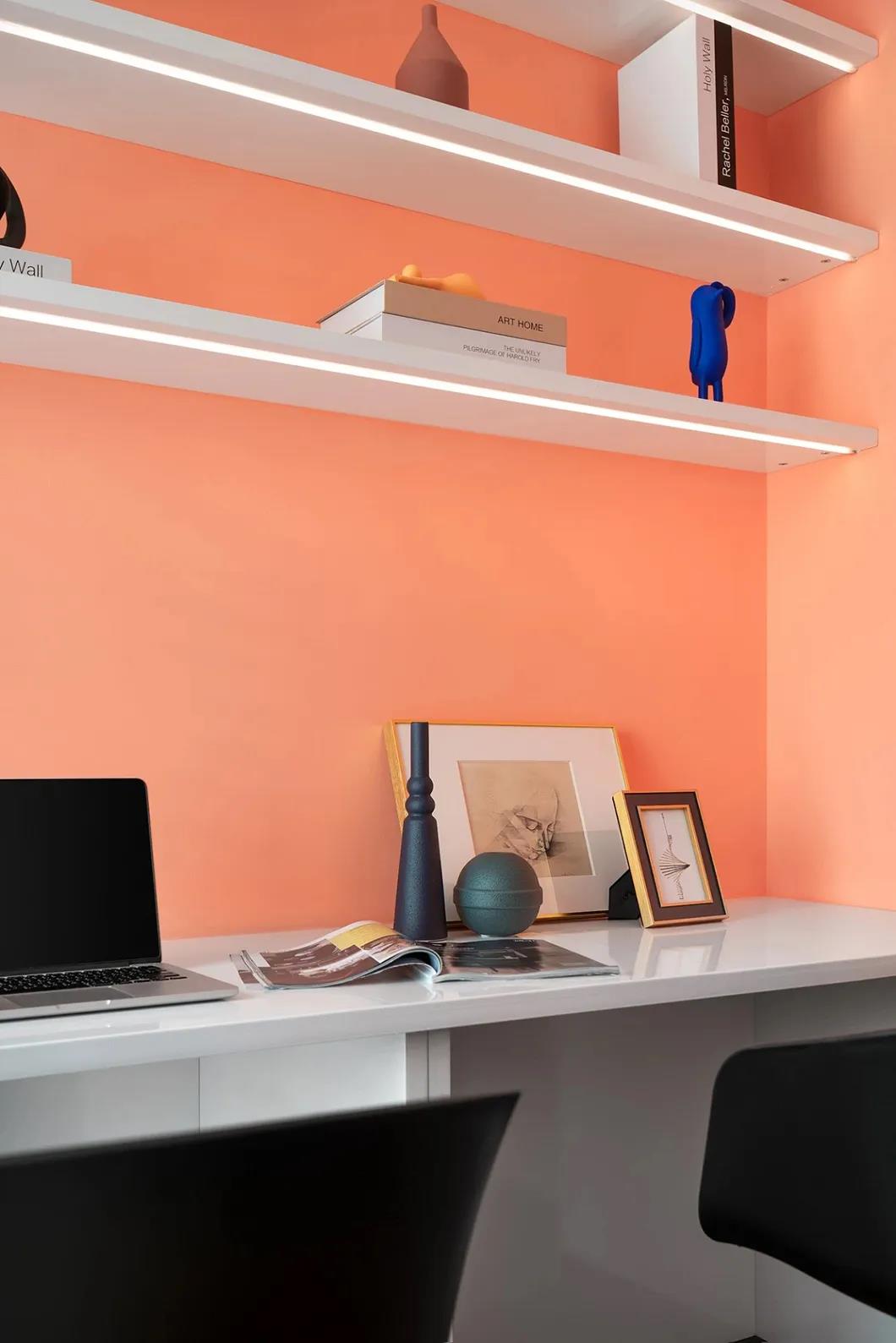書房空間是自我獨(dú)處,享受孤獨(dú)的空間,以柔和的線條、明亮的色彩,營(yíng)造出一種愉悅舒適的氛圍,不僅延續(xù)了整體設(shè)計(jì),同時(shí)給辦公、閱讀帶來新的樂趣,寧?kù)o之至,找尋自我。