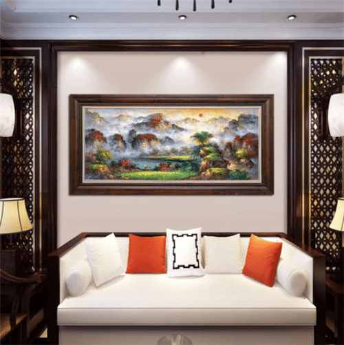 山水風(fēng)景掛畫,一座做山水圍繞,那樣可以讓您有山可以借助,山綿延就是中國龍脈綿延,波動的山峰,一眼往去全是浩渺,在山之巍巍展現(xiàn)出龍的氣場。山的結(jié)實,硬實不能摧,從喻意上而言背靠是一種相對穩(wěn)定的。不論是做買賣或是工作上都是有充沛之氣,并有貴人幫扶,助運也較為旺。