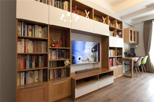 書墻型電視背景墻也是時下較受歡迎的一種,這類類別的電視背景墻針對喜愛去看書或者家中圖書多的家庭而言,是一種非常不錯的挑選,既能具有收納的功效,也可以有著展現的作用。自然每一個家庭的要求都是會各有不同,例如針對去看書少的人而言,很有可能這類電視背景墻可放的書就不足。但書墻型電視背景墻針對有小孩子的家庭而言,是可以鼓勵孩子去看書習慣性的,若是感覺所有打開的方格非常容易招灰,那麼還可以設計成推拉門或者玻璃移門。