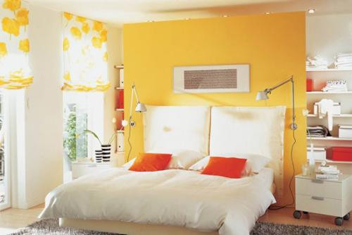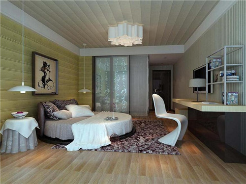 黃色給人一種溫馨,奮發向上的覺得,而臥室的墻面選用黃色,會給人產生一種溫煦溫和的氣氛,讓臥室輕輕松松而隨意。再運用一些純天然材料裝飾設計,產生越來越多的純天然風韻。