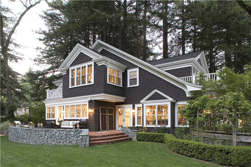 3、假如你要有著像宮殿一樣詩意的外墻,可以挑選復古時尚地磚來貼外墻,而且外墻只貼一半的那類。復古磚的挑選,可以采用深咖啡色或淡黃色,那樣就會有古城堡底座的覺得。