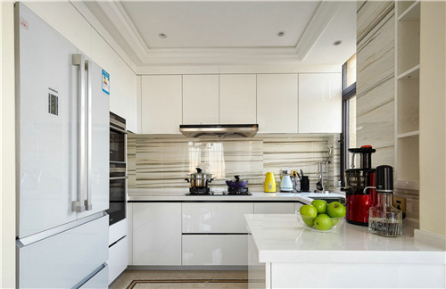 廚房做為充斥著廚房油煙的地區(qū),在開展顏色搭配時,應(yīng)考慮到到它的特性,挑選色度較高,灰度級小的色調(diào),例如白色、淡黃色等。這類顏色不但對人會的食欲有刺激效果,并且和爽口的菜式顏色較為相仿,但不建議挑選顏色過深的顏色,非常容易讓空間造成混亂感,不利烹制。