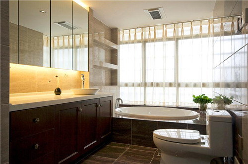 衛(wèi)生間總面積并不大,但盥洗臺用具許多,導(dǎo)致顏色的差異。我們在開展顏色搭配時,應(yīng)盡量減少發(fā)生顏色混亂的問題,宜選用輕快光亮的顏色做為主色,但還應(yīng)注重空間顏色的和睦感。盡量減少大規(guī)模應(yīng)用深棕色,那樣非常容易造成視覺效果上壓迫感。但還應(yīng)防止出現(xiàn)配搭上的頭昏腦脹狀況,那樣顏色搭配起來才較為空氣沉穩(wěn),空間裝飾設(shè)計更突顯。