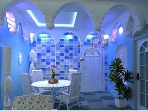 藍(lán)色,一直以來全是爛漫色的意味著,在地中海裝修中應(yīng)用得較多,也是代表著隨意。此外,藍(lán)色也有一定的安神助眠的功效,可配搭組成的顏色也許多。但藍(lán)色不適宜大規(guī)模的用在餐廳廚房和飯店;由于藍(lán)色會(huì)讓食材看上去不那麼誘惑,對(duì)身體的胃口危害非常大。假如把藍(lán)色用在淋浴室裝飾設(shè)計(jì)得話,那就是一個(gè)非常好的挑選,可以增加一絲新鮮感。