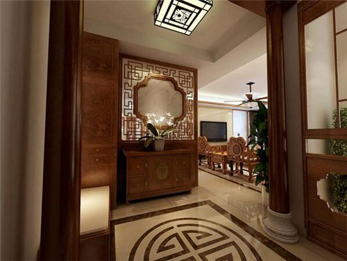 2、現代中式玄關設計可以運用在我國的一些人文原素,更有時代感,可以設計一些鏤花,看起來更為華麗。