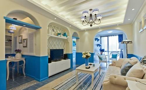 地中海的裝修風格也是許多年青人所鐘愛的,它的給人的覺得是懶散、文藝范兒、隨意、平靜。這類風格的特性是突顯了藍天白云和海洋的幸福風景,選用了深藍色,乳白色這種代表深海的色調來裝飾設計,圓弧形的門也許多見。特別適合歐美風兒的群體。