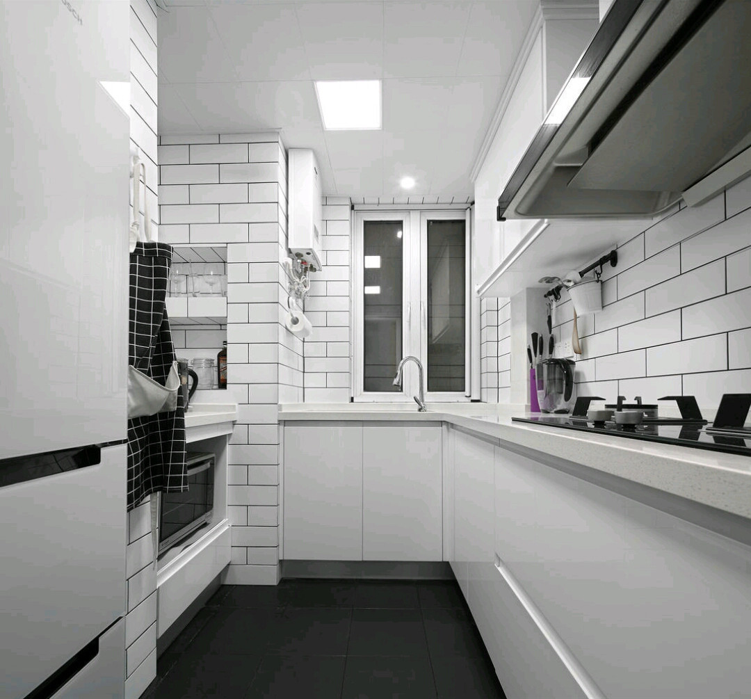 這是廚房的設(shè)計,一樣的很有一種清湯掛面的味兒,北歐風(fēng)格嘛,一直那樣質(zhì)樸。這一餐廳廚房好朋友花了大約5千元,廚房櫥柜控制面板啊,箱門啊都選的性價比高最大的商品。