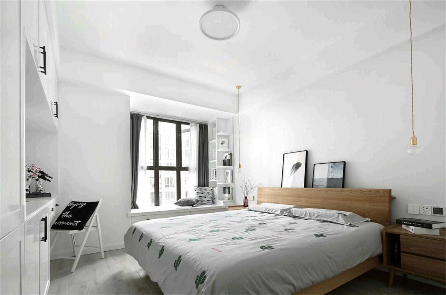 臥房的設(shè)計方案也算規(guī)規(guī)整整的,一個木床變成臥房的主人公。這一木床都不貴哦,據(jù)小伙伴說才3千元了。