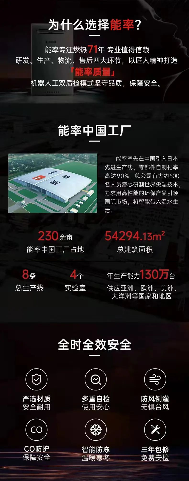 能率將堅持以消費者需求為設計構思立足點,以“淋浴讓人幸福快樂”的發展理念為方位,持續路面向用戶發布平穩經久耐用、特性靠譜、溫暖舒適的燃器具商品,為銷售市場可持續發展觀作出大量有利試著。