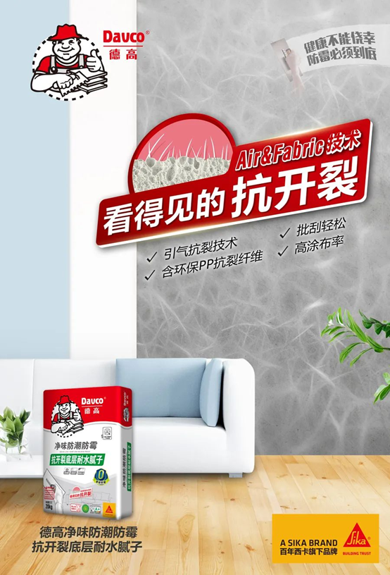 德高凈味防水防霉抗開裂底層耐水膩子選用Air&Fabric技術