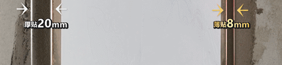 和傳統厚貼加工工藝對比,德高瓷磚膠標準薄貼8mm,就可以將瓷磚死死地粘結上墻,使用量最多可節約≈50%。